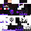 Скин персонажа, выполненный в эндер-стилистике. На голове у него капюшон, лицо скрыто под маской. Вся одежда черная, с яркими фиолетовыми вставками. На груди изображен череп.
