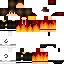 Скин персонажа с текстурой огня на одежде и в черных перчатках на ладонях. На ногах у него черные рваные штаны и кроссовки. Образ дополняет огненная аура, создающая впечатление силы и энергии. Подходит для игроков, которые хотят выделиться ярким и динамичным стилем.