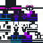Скин скелета в стиле киберпанк. Персонаж полностью черный, но украшен яркими разноцветными элементами. Череп имеет нестандартную форму, глаза фиолетовые, на голове заметны рога. Образ дополняют детали, напоминающие механические вставки и неоновую подсветку.