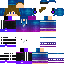 Скин представляет собой парня в сине-фиолетовой одежде. На голове у него надеты наушники, на ногах — черные спортивные штаны с белыми полосками. Образ выглядит стильно и современно.