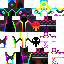 Скин представляет собой яркого разноцветного мага. Лицо персонажа полностью черное, без видимых черт. На теле множество ярких вставок разных цветов, создающих контрастный образ. На спине изображена злая морда, добавляющая агрессивности. Одежда мага сочетает несколько оттенков, что делает его заметным в игре.